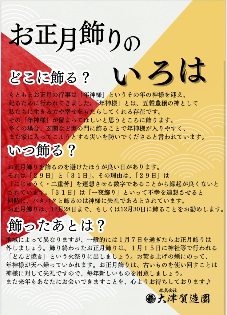 12月26日から30日までの間、大津賀造園の事務所にて販売を行なっておりますので、是非お立ち寄りください!